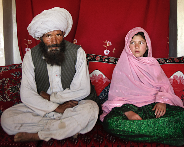 Flickor kan tvingas till giftermål med gamla män i andra länder där islam råder. Profeten Muhammed gifte sig med Aisha när hon var nio år gammal. I Sverige kan vuxna kvinnor vara omyndiga när de ska gifta sig enligt islam. De måste ha släktens mäns godkännande. Bilden från toyoungtowed.org