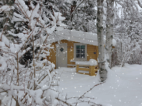 Och det blev önskeväder fast någon dag för sent, men det gör ingenting. Det är en aning blå himmel och lite snö i luften nu också. Och på marken.